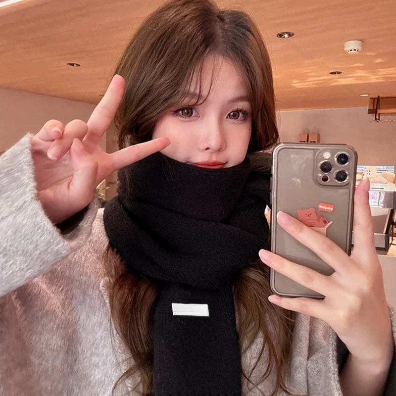 2024 Women's and Men's Classic Solid Color Knitted Red Scarf - Soft, Warm, Thermal Wool Muffler for Winter